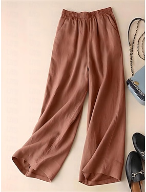Per donna Finto cotone e lino Chinos Pantaloni Estivi Vacanza Streetwear Essenziale Lunghezza intera Vita media Semplice Tasca Elastico in vita Comodo Comodità Inelastico Quotidiano All'aperto Vacanza