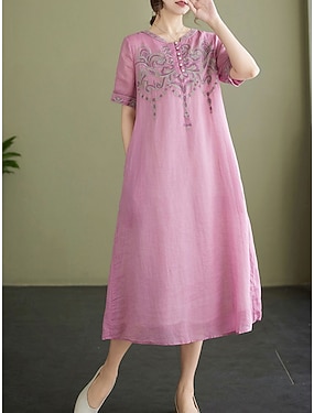 Per donna Abito Midi Finto cotone e lino Abito a Tubino Vestito Estivo Vestito Casual Essenziale Casual Casuale Quotidiano Vacanza Vestibilità regolare Grafico Manica Corta Girocollo Blu Rosa Estate