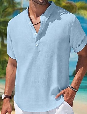 Per uomo Camicia con colletto a fascia Camicia popover Camicia estiva Abbigliamento mare Maglietta informale Liscio Esterno Per eventi Bianco Blu Verde Grigio Manica corta Henley Primavera estate