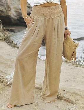 Per donna Misto cotone Finto cotone e lino Gamba larga Chinos Vacanza Streetwear Essenziale Lunghezza intera Vita media Semplice Tasca Elastico in vita Comodo Traspirante Micro-elastico Quotidiano