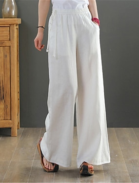 Per donna Finto cotone e lino Gamba larga Pantaloni Estivi Pantaloni Vacanza Moda Essenziale Lunghezza intera Naturale Semplice Tasca Elastico in vita Comodità Asciugatura Rapida Morbido Quotidiano