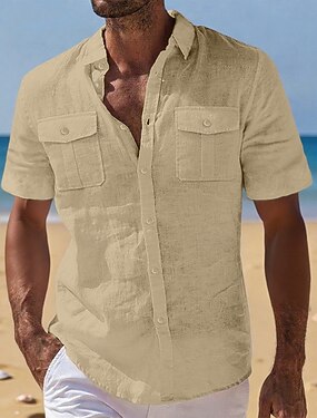 Per uomo Camicia Camicia di lino Camicia Estiva Abbigliamento da spiaggia Camicia cargo Tinta unica Casuale Vacanza Nero Bianco Blu marino Azzurro cielo Manica Corta Bavero Estate Primavera