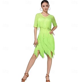 Balli latino-americani Abito Lustrini Nappa A fantasia Per donna Prestazioni Addestramento Senza maniche Alto Poliestere