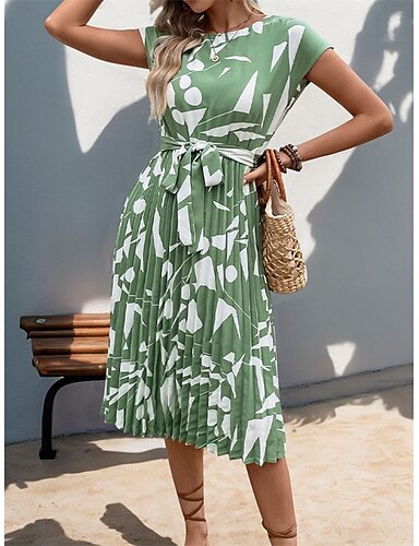 Per donna Abito Midi Vestito Estivo Vestito Casual Vacanza Casual Spiaggia Spiaggia Feste Vestibilità comoda Grafico Geometrico Manica Corta Scollo a V Verde Estate Primavera