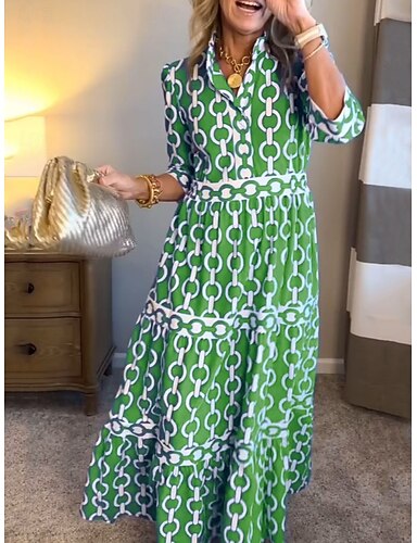 Per donna Abito maxi Abito a trapezio Vacanza Casual All'aperto Uscire Vestibilità regolare Grafico Manica Lunga Collo ripiegato Blu Nero Rosso Viola Estate Primavera Autunno