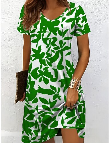 disegno episodico mini abito da donna prendisole abito t-shirt abito maglietta vacanza casual uscire vestibilità regolare grafica floreale manica corta scollo a V verde estate primavera autunno
