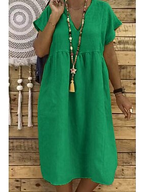 Per donna Mini Abito Finto cotone e lino Abito a Tubino Essenziale Classico Moderno Quotidiano Vacanza Ferie Vestibilità regolare Semplice Manica Corta Scollo a V Nero Giallo Blu marino Arancione