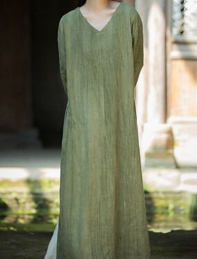 Per donna Abito Lungo Maxi Abito Abiti in cotone e lino Abito a Tubino Elegante Vintage Vacanza Ferie Uscire Vestibilità comoda Semplice Manica Lunga Scollo a V Arancione Verde Grigio Primavera