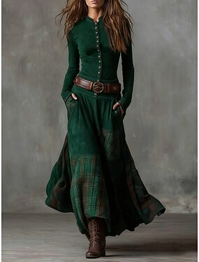 Per donna Abito Lungo Maxi Abito Vestito Casual Vestito maxi Elegante Moda Moderno Quotidiano Vacanza Uscire Vestibilità regolare Semplice Manica Lunga Scollo a V Verde Primavera Autunno