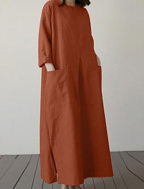 Per donna Abito maxi Finto cotone e lino Abito a Tubino Vestito a caftano Vestito Casual Casual Quotidiano Casual Stile da Strada Quotidiano All'aperto Vacanza Vestibilità comoda Semplice Manica Lunga