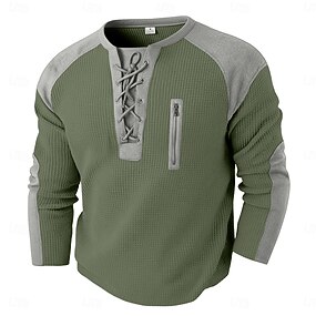 Per uomo Maglietta Waffle Maglietta Manica Lunga Girocollo Collo con lacci Autunno Autunno & Inverno Tinta unica Blocco di colori Tradizionale / Vintage Casual Coulisse Casa All'aperto Sport & Outdoor