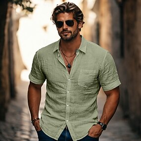 Per uomo Camicia Camicia di lino Camicia Estiva Abbigliamento da spiaggia Camicia con Bottoni Tinta unica Vacanza Crociera Nero Rosa Verde Azzurro Manica Corta Colletto Estate Primavera & Estate
