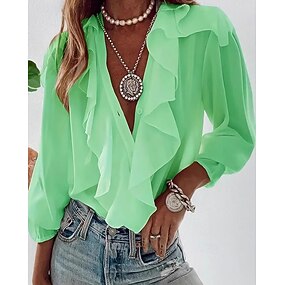 Per donna Camicia Blusa Volant Semplice Elegante Manica Lunga Scollo a V Top Regolari Quotidiano Ferie Uscire Nero Bianco Verde chiaro Verde Rosa Estate Primavera Autunno