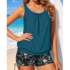 Per donna Tankini arricciato 2 pezzi Tropicale Protezione UV Elastico Senza Maniche Costume da Bagno Surf Spiaggia Nuoto Estate