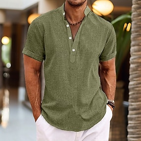 Per uomo Camicia Camicia di lino Camicia popover Camicia Estiva Abbigliamento da spiaggia Camicia con colletto alla coreana Semplice Vacanza Crociera Nero Bianco Rosa Verde Manica Corta Henley Estate