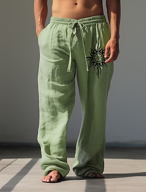Per uomo Sole Tribale Pantaloni casual Pantaloni Pantaloni Larghi Misura del girovita medio Vintage All'aperto Abbigliamento casual alla moda Abbigliamento quotidiano Autunno & Inverno Verde Cachi