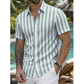Per uomo camicia di lino Camicia estiva Abbigliamento mare Camicia con bottoni A strisce Da mare Curise Bianco Blu Verde Cachi Manica corta Bavero Primavera estate Abbigliamento Di base