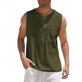 Per uomo Camicia Camicia di lino Camicia Estiva Abbigliamento da spiaggia Camicia con cappuccio Maglietta senza maniche Semplice Casuale Vacanza Nero Bianco Giallo Blu marino Senza Maniche Con