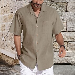 Per uomo camicia di lino Camicia estiva Abbigliamento mare Maglietta informale Camicia con bottoni Liscio Da mare Curise Bianco Blu Verde Cachi Manica corta Bavero Primavera estate Abbigliamento