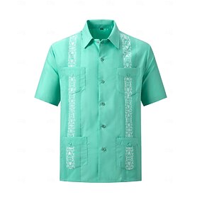 Per uomo Camicia Nero Bianco Verde chiaro Rosa Vino Manica Corta Ricamato Colletto a Camicia Casuale Ricamo Abbigliamento Elegante Vacanza Vintage Quotidiano