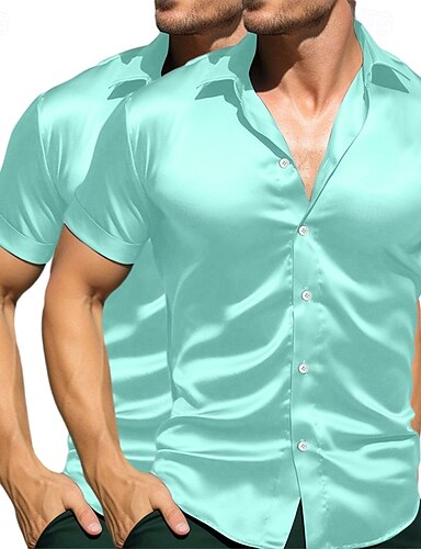 Per uomo Camicia Camicia in raso Camicia estiva Abbigliamento mare Camicia con bottoni Maglietta informale Nero Rosso Verde Manica corta Liscio Colletto Giornaliero Da mare Abbigliamento Di tendenza