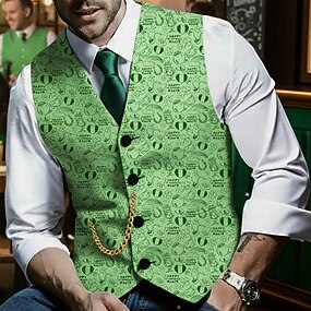 Per uomo Gilet All'aperto San Patrizio Moda Streetwear Primavera Autunno Bottoni Cotone Traspirabilità Di tendenza Grafico Trifoglio Monopetto Scollo a V Vestibilità regolare Verde Gilet