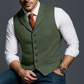 Per uomo Gilet Panciotto Da mare Giornaliero Ricevimento di matrimonio Appuntamento Di tendenza Informale Primavera Autunno Bottoni Tasche Poliestere Comodo Liscio Monopetto - 1 bottone Bavero