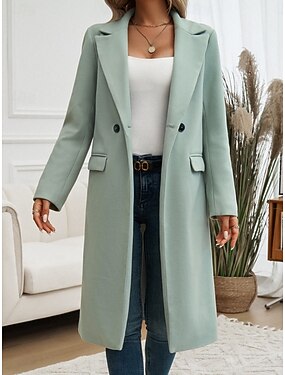 Per donna Trench Confortevole Traspirante Tasca Bottoni Casual Semplice Vacanza Streetwear Casuale Abbigliamento quotidiano Monopetto Lungo Collo ripiegato Vestibilità regolare Manica Lunga Capispalla
