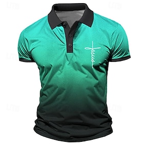 Per uomo Geometrico Polo Sportivi Manica Corta Magliette polo Camicie con Colletto Casual Athleisure Bottoni Primavera & Estate Blu Verde Grigio