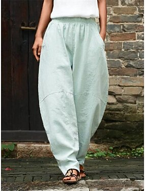 Per donna Finto cotone e lino Chinos Pantaloni Estivi Pantaloni Semplice Casual Lunghezza intera Vita Alta Semplice Tasca Elastico in vita Baggy Comodità Traspirabilità Morbido Micro-elastico
