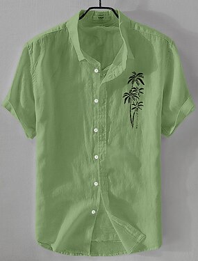 Per uomo Camicia Camicia di lino Camicia Estiva Camicia da Spiaggia Camicia con Bottoni Albero di Cocco Vacanza Casuale Nero Bianco Verde chiaro Rosa Manica Corta Collo ripiegato Estate Abbigliamento