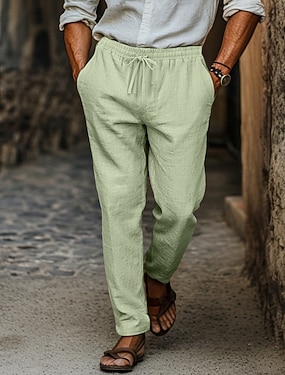 Per uomo Pantaloni di lino Pantaloni Pantaloni estivi Pantaloni da spiaggia Tasche A cordoncino Vita elastica Liscio Comfort Traspirante Da mare Giornaliero Per eventi Hawaiano Boho Verde militare
