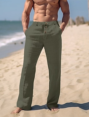 Per uomo Pantaloni di lino Pantaloni Pantaloni estivi Pantaloni da spiaggia Vita elastica Pulsante laterale Plissettato Liscio Comfort Traspirante Lunghezza intera Informale Giornaliero Per eventi