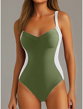 Costume da bagno intero da donna Snellente Monokini Colorblock Controllo della pancia Alta vita Slim Senza schienale Abbigliamento da spiaggia in vacanza Collo a V Senza maniche