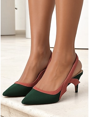 Scarpe con tacco a spillo color block verde e ruggine da donna, décolleté con tacco basso e punta affilata per appuntamenti casual e outfit chic di tutti i giorni
