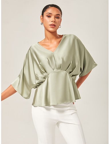 Per donna Femminile Camicia casual Casuale Corte Blu marino Azzurro cielo Verde Manica Corta Elegante Vacanza Scollo a V Estate Primavera