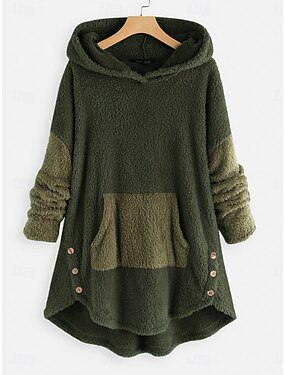 Per donna Felpa con cappuccio Blocco di colori Casual Manica Lunga Con Cappuccio Top Regolari Streetwear Abbigliamento Quotidiano Tasca Bottoni Rosa Verde Caffè Grigio Autunno Inverno