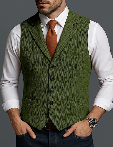 Per uomo Gilet in tweed Gilet Formale Matrimonio Vacanza Quotidiano Moda Classico Primavera Autunno Tasca Bottoni Tweed Poliestere Confortevole Semplice Spina di Pesce Monopetto Collo a Lancia
