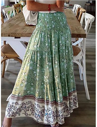 Per donna Bohemien Moda Casual Maxi Vita Alta Gonne Floreale Stampato Micro-elastico Quotidiano Streetwear Rosso Blu marino Verde Estate Poliestere