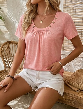 Per donna Tunica Bottoni Grafico Semplice Elegante Manica Corta Girocollo Top Regolari Quotidiano Bianco Rosa Cachi Grigio Estate Primavera Autunno