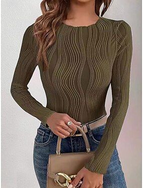 Per donna Blusa Tinta unica Elegante Casual Manica Lunga Girocollo Top Regolari Quotidiano Blu Nero Rosso Verde Cachi Primavera Autunno Inverno