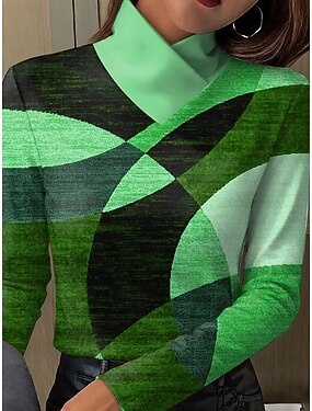 Per donna Maglietta Stampato Grafico Geometrico Astratto Elegante Vintage Moderno Manica Lunga Dolcevita Top Regolari Quotidiano Blu Arancione Verde Grigio Primavera Autunno Inverno