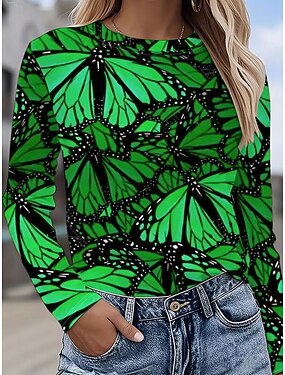 Per donna Maglietta Stampato Grafico Animale Farfalla Vintage Moda Elegante Manica Corta Manica Lunga Girocollo Top Regolari Quotidiano Weekend Nero Bianco Rosa Verde Cachi Estate Primavera Autunno