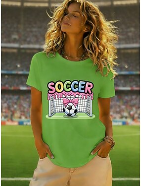 Per donna Maglietta Stampato Grafico Calcio Elegante Classico Casual Manica Corta Girocollo Top Regolari Quotidiano Sportivo Uscire Nero Bianco Verde Grigio Estate Primavera
