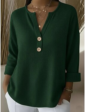 Per donna Blusa Tasca Bottoni Semplice Casual Manica Lunga Scollo a V Top Regolari Quotidiano Ferie Blu Giallo Viola Verde Cachi Estate Primavera