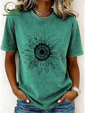 Per donna Maglietta Stampato Lavaggio acido Lavaggio vintage Grafico Piante Lettera Elegante Essenziale Classico Manica Corta Girocollo Top Regolari Casuale Quotidiano Blu Nero Rosa Viola Verde