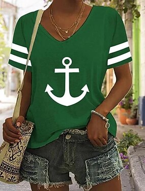 Pasqua Per donna Maglietta Stampato Oceano A righe Casual Manica Corta Scollo a V Top Regolari Quotidiano Uscire Weekend Blu Nero Bianco Rosso Verde Estate
