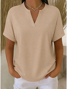 Per donna Maglietta Semplice Moda Elegante Classico Manica Corta Scollo a V Top Regolari Quotidiano Uscire Weekend Blu Nero Bianco Rosa Rosso Estate Primavera