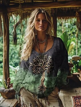 T-shirt VIKING Boho da Donna T-shirt Tee Top Grafica Floreale Bohemia Vintage Etnica Manica Lunga Collo Giro Top Regolari Quotidiani Weekend Vacanza Stampa Blu Rosso Viola Fucsia Verde Estate