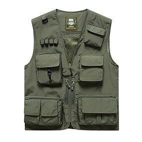 Per uomo Gilet da pesca Gilet senza maniche All'aperto Casual Primavera Autunno Tasca con cerniera Nylon Asciugatura Rapida Semplice Cerniera Verde militare Kaki Blu scuro Gilet